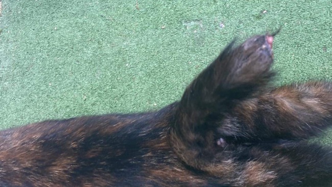 Kotka została zabrana z terenu działek, gdzie koty rozmnażały się w niekontrolowany sposób. To nie pierwszy przypadek kota z tych okolic z takim urazem.