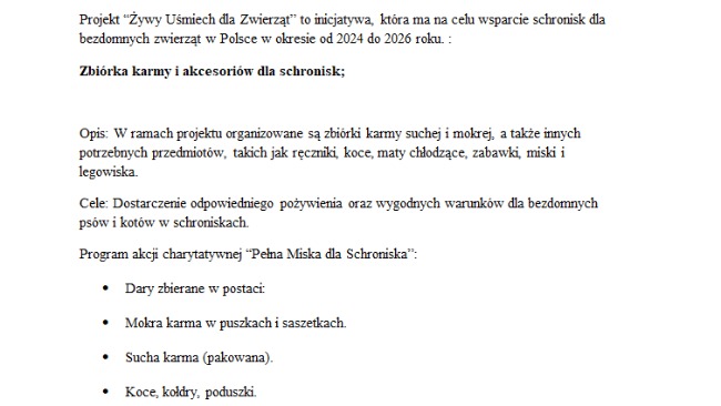 Nasz projekt chce w pełni pomagać naszym małym zwierzaka dlatego własnie jest ta zbiórka działania ze zbiórki będa ukazywane na stronie jak i na naszych social mediach.