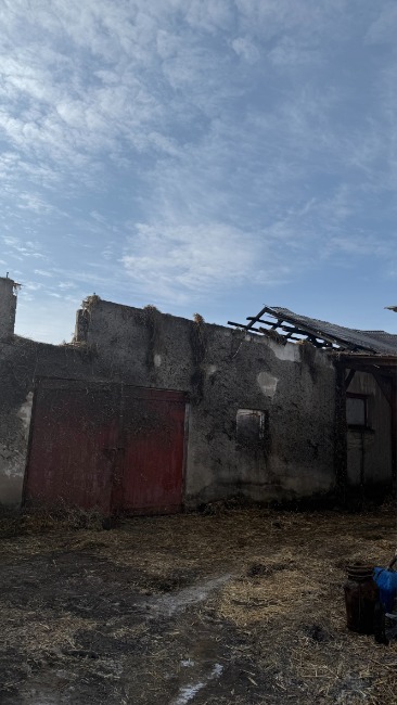 W dniu 20.02.2026 r. po godzinie 16 u naszych sąsiadów wybuchł pożar, który swoim zasięgiem objął zarówno budynek mieszkalny jak i budynek gospodarczy - oborę. Stracili oni dorobek na który pracowali całe życie. Dom ma spalony dach, a wnętrze zostało zalane wodą w wyniku czego szkodzie uległy również wszystkie rzeczy znajdujące się w pomieszczeniach. W oborze zniszczeniu uległa cała konstrukcja dachu, środek również został zalany wodą. Sąsiedzi stracili również zapasy słomy, które miały starczyć do przyszłych żniw.
