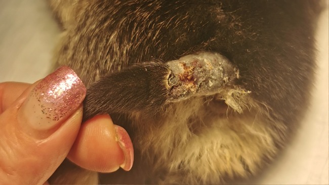 Już na wstępnie zmagamy się z różnymi problemami. Jeden dzieciak - rana szarpana na szyji, drugi osesek - martwica ogonka. Trzeba było amputować.