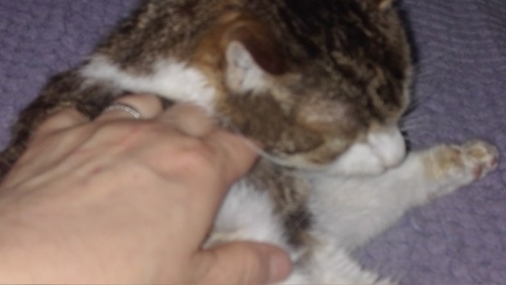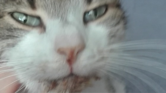 Kilka dni temu zauważyłam zasmarkany nos, zaropiałe oczka oraz problem z gryzieniem i łykaniem. Supełek okazał się być łagodnym, ale bardzo wystraszonym kotełem, udało się go złapać i zawieźć do weta.