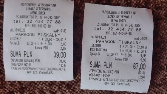 Ze względu na bardzo duże odwodnienie badań krwi nie udało się jeszcze zrobić, ale to przed nami.