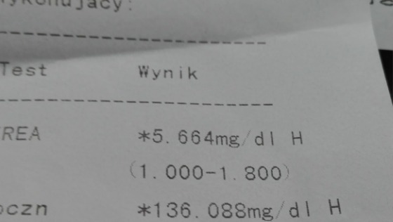 Wyniki krwi małego sa bardzo złe , niewydolność nerek .