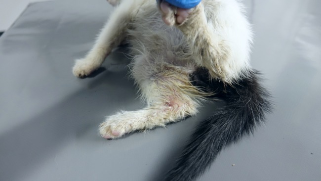 Trafiła do nas przerażona, cierpiąca i zasikana do tego stopnia, że była cała mokra i nawet z jej ogona skraplał się mocz. Potem z powodu potwornego bólu miała z kolei problemy z wypróżnianiem się