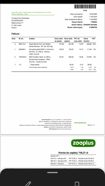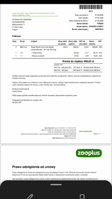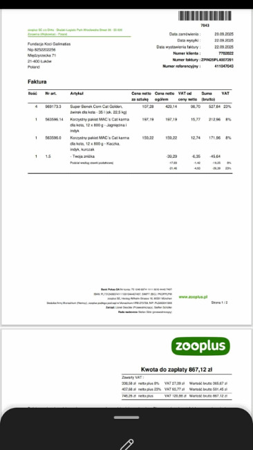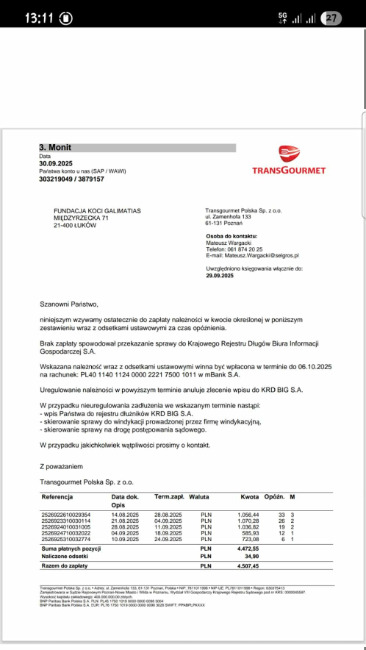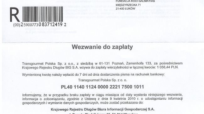 pojechałam jak zwykle, co tydzień po mięso do barfa dla Kotów- naładowałam 90 kg do koszyka, idę do kasy a tam ... zapadłam się pod ziemię ze wstydu bo Pani przy kasie nie mogła dać mi faktury na przelew, tak jak dotychczas. Zawołała Kierowniczkę- myślą, dumają, telefony do wyżej postawionych Ludzi by usłyszeć, że mam blokadę. Droga pani, gdy zapłaci Pani zaległość na ponad 7 000 to przywrócimy możliwość odroczonej płatności. Mam już wpis do Krajowego rejestru Długów.
