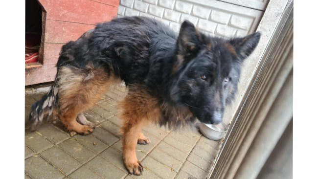 Poza złamaną łapą Baloo jest koszmarnie wychudzony i zaniedbany. Waży niespełna 25kg! Owczarek jego wielkości powinien ważyć co najmniej 10kg więcej :(