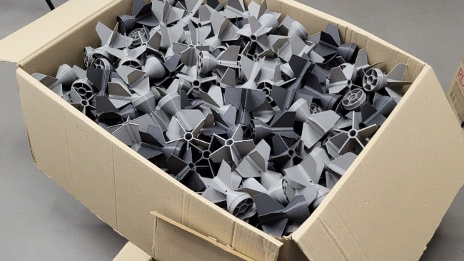 33 з 38 принтерів оснащено власноруч розробленою системою самоскиду надрукованого, котра дозволяє друкувати в циклі без суттєвого залучення людини. Інші 5 принтерів теж за потреби друкують в циклі, але інші вироби.