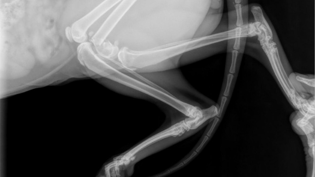 Po przybyciu do kliniki weterynaryjnej, lekarze przeprowadzili szczegółowe badania, które ujawniły uraz – złamanie przynasady kości udowej lewej.