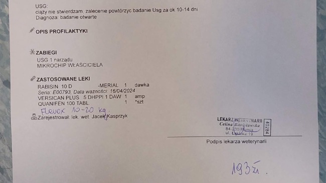 Musiałyśmy ją odpchlić, odrobaczyć, zaszczepić i zaczipować. Zrobiłyśmy jej również usg by sprawdzić czy nie jest w ciąży.