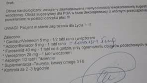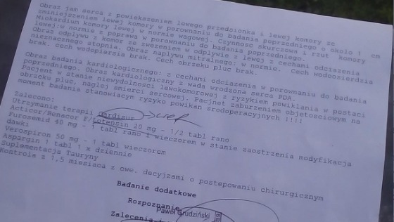 Po konsultacji z 7 sierpnia : u Melanii lewa komora serca pomniejszyła się aż o centymetr i zniknął obrzęk płuc, natomiast to wciąż za mało aby ją zoperować. Melania otrzymuje leki wspomagające prace serca i nie może poddać się operacji do momentu aż leki zadziałają i pomniejszą jej serducho na tyle aby mogło samodzielnie pracować , złe przygotowanie farmakologicznie grozi powikłaniami śródoperacyjnymi w postaci nagłego zatrzymania akcji serca, bądź śmiercią pooperacyjną z powodu możliwości powiększenia lewej komory i zerwania szwów. Operacja w każdym momencie jest ryzykowna , dlatego chcemy ją jak najlepiej przygotować aby zwiększyć szanse powodzenia przeprowadzając 1,5 miesięczne leczenie farmakologiczne do momentu kolejnej konsultacji.