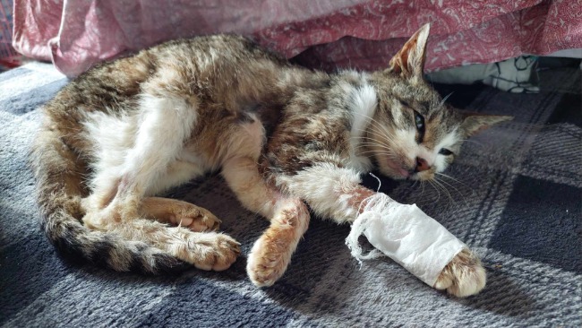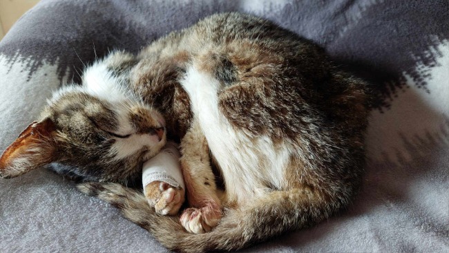 Basia dostaje specjalną karmę dla kotów z chorymi nerkami, leczymy jej rany, których miała bardzo dużo na całym ciele, miała wyrwane dwa pazurki, łapka jest spuchnięta i widać, że sprawia jej ogromny ból, zmieniamy opatrunki gojące stan zapalny, dostaje kroplówki wzmacniające i wypłukujące toksyny z jej organizmu, robimy kolejne badania, żeby znaleźć przyczynę takiego stanu zdrowia. Dajemy jej troskę i miłość, której pewnie nigdy w życiu nie zaznała. Chociaż tyle możemy dla niej zrobić...