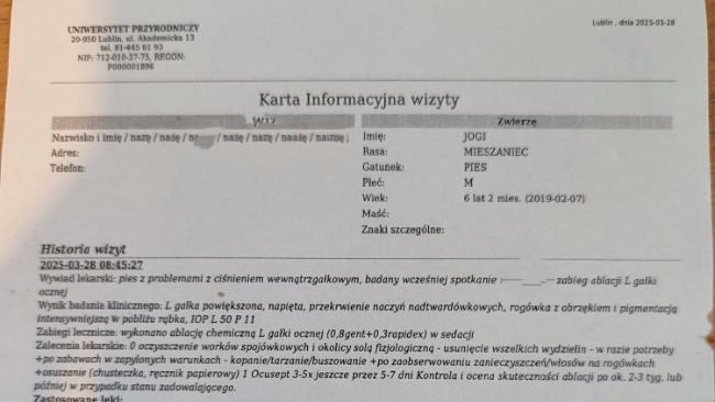 Dlatego teraz liczymy na prawdziwe i realne wsparcie, bo Jogi i Pestka przede wszystkim muszą przejść OPERACJE USUNIĘCIA GAŁEK OCZNYCH, a zabieg już w piątek.