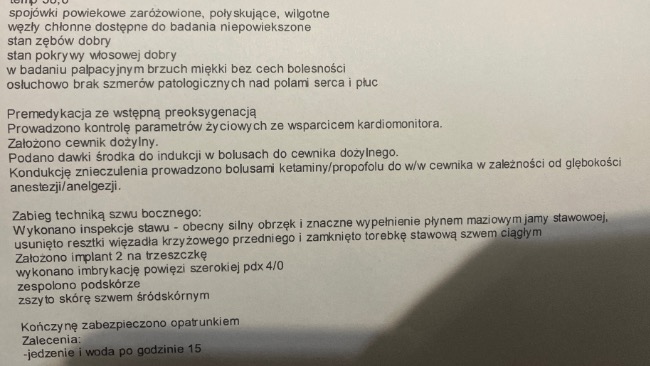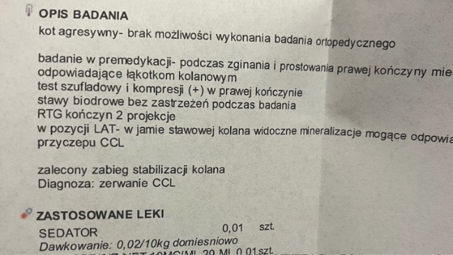Została skierowana na rtg, po którym okazało się, że zerwała więzadło krzyżowe przednie-CCL. Zerwanie tego więzadła nie goi się samoistnie, jednym wyjściem była operacja. W przeciwnym razie takie zerwanie spowodowało by u Klemki kulawizne i ból podczas chodzenia do końca życia.