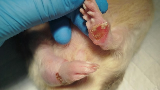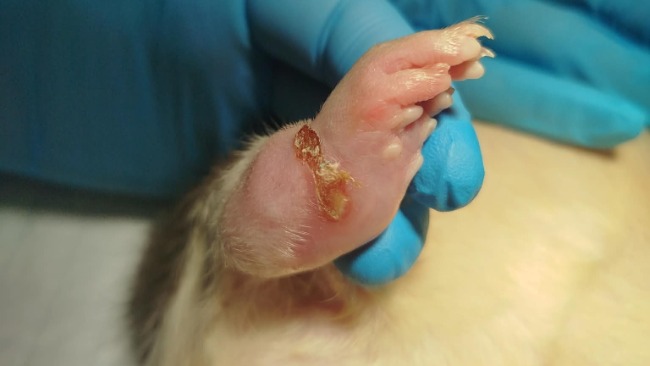 Potrzebujemy waszej pomocy. Od lat nie mieliśmy tak dużego szczura, waży aż 910 g. Został porzucony 11 lutego, w mikroklatce, w której nawet nie mógł się obrócić. Już przy przyjęciu widzieliśmy, że jest bardzo źle. Badania ujawniły zaawansowaną otyłość, łojotok, silny obrzęk oraz poważny proces degeneracyjny w prawej łapie, powiązany z ropnym zapaleniem stawu. Niestety czeka go operacja amputacji łapki, a także usunięcie dużego guza na grzbiecie. Zanim to się jednak stanie, musi schudnąć i w pełni wyzdrowieć z przeziębienia. Koszty zabiegu chirurgicznego nie będą małe, a każda złotówka będzie na wagę życia. Prosimy was o wsparcie, byśmy mogli zapewnić mu bezpieczną operację i szansę na zdrowe, normalne życie. Niech zobaczy jak wyglądają porządne warunki i duży wybieg!
