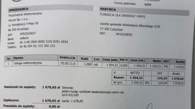 Do znalezienia odpowiedzi potrzebujemy ponad 3 tysięcy na tomografię i rezonans. Potem ewentualnie kilka lub kilkanaście tysięcy na operację, jeśli chcemy go ratować.