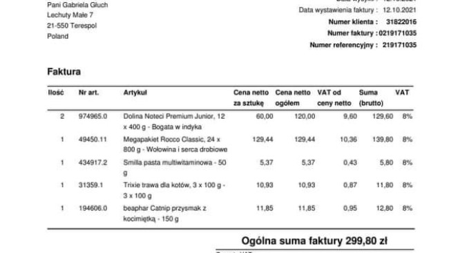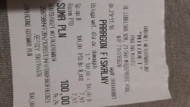 Długi które powstały z racji transportu ,zakupu karmy, żwirku, środków dezynfekujących, środków czystości to kwota prawie 800 zł.