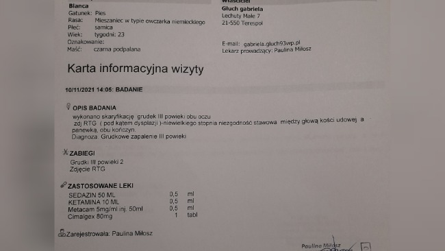 Choć po parwowirozie zostało wspomnienie, Blaneczka wciąż ma kolejne infekcje , zapalenie spojówek oraz grudkowe zapalenie trzeciej powieki ,opornej na leczenie farmakologiczne .