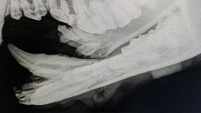 Badania wykazały otwarte złamanie prawej gałęzi żuchwy z odłamkami kości i osłabieniem neurologicznym. To musi niesamowicie boleć… a on dalej dzielnie, spokojnie znosi każdą procedurę, jakby bał się komukolwiek sprawić kłopot.