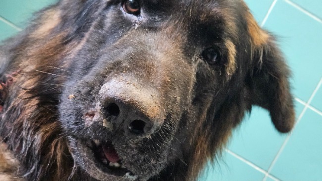 Przyjechał do nas skrajnie odwodniony, wygłodzony, bo z powodu złamanej szczęki nie mógł jeść, w uszach kilkuletni brud, wyciągnęliśmyz niego okolo 20 kleszczy. Ale mimo to… merda ogonem. Ten pies ma w sobie tyle łagodności, że trudno to opisać.