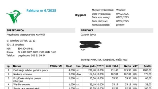 Oczywiście fakturę i opis zabiegu wstawię na zbiórkę.