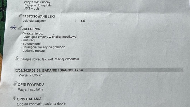 Najpierw nie mógł być operowany bo osłuchowo wyszło, że ma coś z sercem… więc wlasciele czekali. Drako rozgryzł guza na brzuchu i nagle okazało się że można podjąć operację.