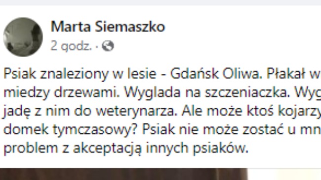 Część z Was zapewne widziała umieszczony przed chwilą post o szczeniaku z wypływającą niemalże gałką oczną, który znaleziony został w lesie.