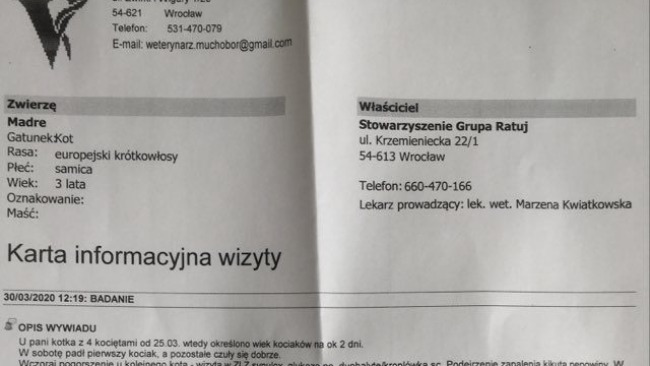 Musimy zapłacić faktury za próby ratowania zmarłych kociąt a także za leczenie tych co żyją. Za porządną karmę oraz suplementy mające wesprzeć organizm kociej mamy. Wraz z wiekiem, koszty będą rosły, szczepienia, odrobaczenie, ewentualne inne infekcje.