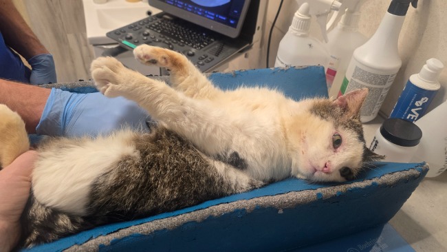 Badanie USG pokazało bardzo zły obraz pęcherza – ogromny osad i silny stan zapalny. Wszystko wskazuje na poważne problemy z układem moczowym i trudności z oddawaniem moczu, a dokładniej silny ból przy siusianiu.