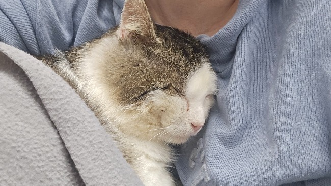 Adaś trafił do nas w największe mrozy w styczniu. Zmarznięty, słaby i okrutnie zasmarkany, z zaropialymi oczami, których z bólu nie otwierał. Udało się go uratować – dostał ciepło, jedzenie i opiekę. Powoli zaczynał dochodzić do siebie.