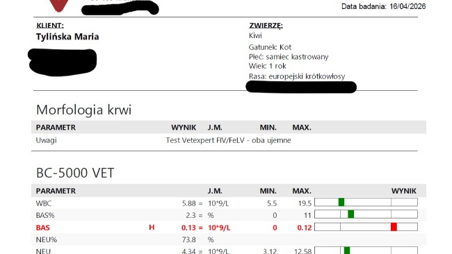 W czwartek 16.04 poszliśmy na badania krwi (koszt 380 zł), wyniki na zdjęciach - bilirubina, anemia i wartości białek złe.😿 Czekamy jeszcze na wyniki elektroforezy (gdy tylko je otrzymamy zostaną opublikowane), które pomogą bliżej zdiagnozować, natomiast podejrzewamy z weterynarzem FIP - zakaźne zapalenie otrzewnej kotów. To choroba, którą trudno się diagnozuje, zwłaszcza gdy objawy są niespecyficzne (jak u naszego Kiwi), a nieleczona jest zawsze śmiertelna.