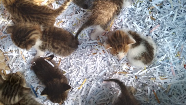 Bezdomna, chudziutka koteczka z ośmioma maluszkami okociła się w szopce. Nie możemy ich do siebie zabrać. Nie mamy już miejsc... Możemy tylko kupić karmę, żeby mama nie opadła z sił, żeby przetrwała karmienie tak ogromnego miotu.