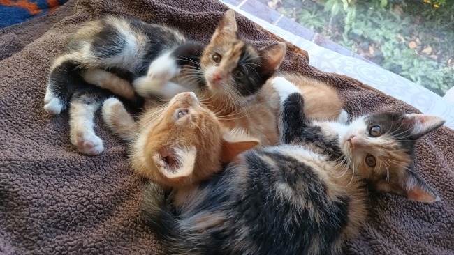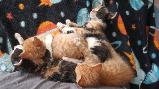 Późnym latem pod opiekę Fundacji Fioletowy Pies trafiły małe kocie sierotki. Zanim dowieziono je do domu tymczasowego, jeszcze nie wiedziałyśmy, że są na tyle malutkie, że trzeba będzie je dokarmiać z butelki. A że była ich czwórka, to Natalia - ich opiekunka, miała ręce pełne roboty i nieprzespane noce.