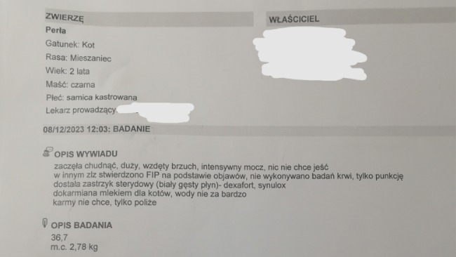 Witajcie! Niestety, ale jakiś czas temu (13 grudnia) Perełka przekroczyła tęczowy most... Była w najgorszym stanie ze wszystkich mruczków... Oby była teraz w lepszym miejscu... Potrzebowaliśmy czasu, aby przyswoić tą informację, ale już z Wami jesteśmy. Zaś pozostałe kotki mają się lepiej. Dzisiaj odbyła się wizyta, płyn zalegający w ich brzuszkach zniknął i czują się znacznie lepiej. Jedzą, piją, a nawet się ganiają między sobą. Zastrzyki są bolesne przez odczyn kwasowy leku, więc jedynie chwilowo się na nas obrażają, ale zaraz im przechodzi i dają się normalnie pogłaskać. Dziękujemy za Wasze wpłaty i udostępnienia zbiórki! To dla nas olbrzymia pomoc, nie mówiąc już o Dianie i Karmelku, którym Wasze wsparcie ratuje życia. Kończymy już fazy zastrzyków i mruczki będą brały tabletki. Trzymamy za nie kciuki i wspieramy w walce o życie! Choroba się toczy dalej, terapia trwa, ale wszystko wychodzi już na prostą. Perełko - pamiętamy o Tobie. Mamy nadzieję, że miałaś szczęśliwe, pełne wspaniałych przygód życie, i że teraz masz przed sobą niekończące się, bezkresne łąki. Pozdrawiamy Ciebie oraz wszystkich, którzy wspierają Twoje rodzeństwo.