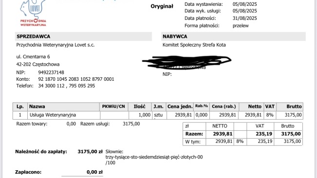 Jaka jest cena życia kota ? Dla nas jest ono bezcenne, ale niestety leczenie ma swoją cenę. W tej chwili do opłaty są dwie bardzo ważne faktury, jedna z nich jest cena za życie Mirusia, kota znalezionego na ulicy chwilę po potrąceniu przez samochód. Druga to leczenie kilku kociaków w równie ciężkim stanie.