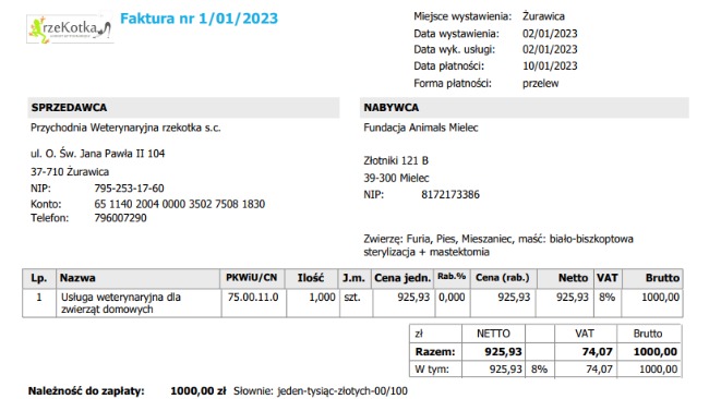 Faktura za leczenie