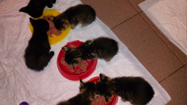 Już za chwilę wywieszę białą flagę. Brakuje mi już sił, zamiast żeby było coś lepiej to jest coraz gorzej. Można oszaleć, może powiecie wzięła to sobie radź, ale jak je zostawić? Siedem maluszków z mamą, taką kocią rodzinkę, skoro już o nich wiem. Pojechałam na wizję lokalną i serce by mi nie pozwoliło je tam zostawić. Tam, gdzie jest już zimno, mokro, gdzie nie są karmione, bez opieki wet. Tam gdzie czyha na nie niebezpieczeństwo i prawie pewna śmierć. Znów wieś, plaga kotów, bezmyślność ludzka. Bo to wina człowieka, bo na czas nie wysterylizował kocicę. No i mam je już u siebie w Chatce Skrzatka, kocią matkę i 13 maluszków. Pewno zapytacie skąd 13 ano swoich ma 6, a 7 jest bez matki która zginęła. Tam gdzie były usłyszałam, że mam je sobie zabrać bo jak nie to dziad się z nimi rozprawi.