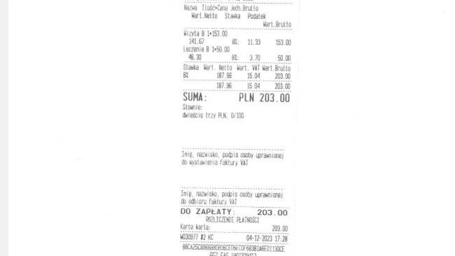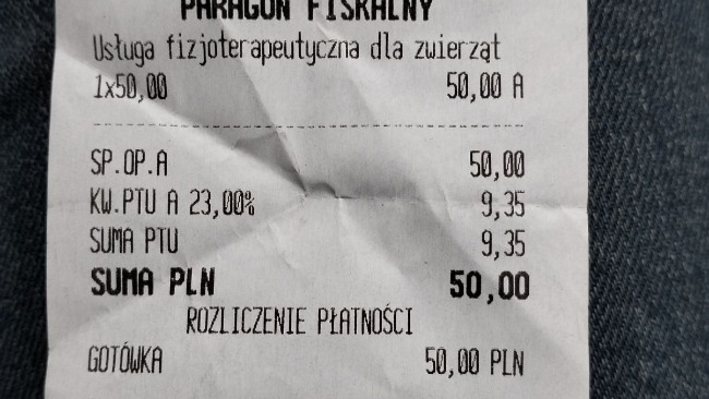 Kolejny paragon za rehabilitację: