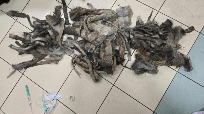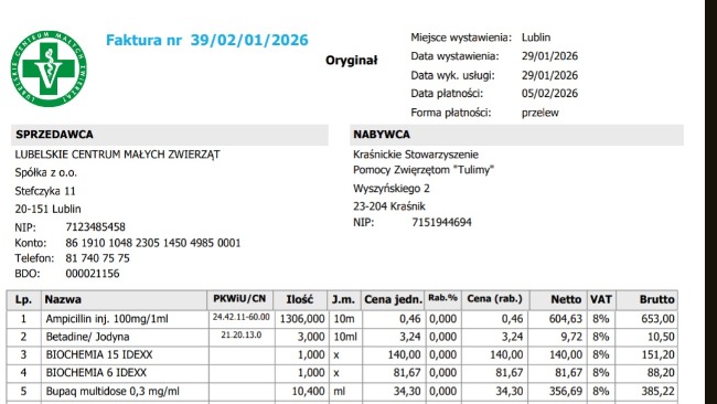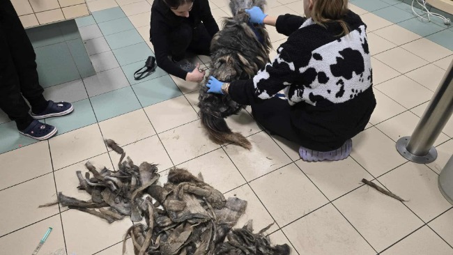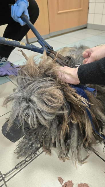 Wczoraj wieczorem zawieźliśmy go do Lublina, do kliniki weterynaryjnej. Na miejscu wykonano morfologię krwi, a także rozpoczęto usuwanie filcu, na więcej nie pozwalał wtedy jego stan oraz bezpieczeństwo psa.
