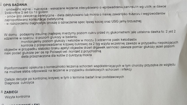 Tymczasem Pimpuś jest w klinice i zostaje na noc. Rokowania są ostrożne choć podobno stan się poprawia. Najważniejsze to opanować kwasicę ketonową.