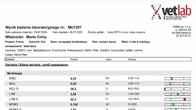 Nie zapytałam jeszcze wtedy o koszta, bo nie jest to pierwszy zwierzak pod moimi skrzydłami który takiego zabiegu potrzebuje i już wtedy wiedziałam, że będą one duże a jednocześnie miałam świadomość, jak bardzo trudne a może nawet niemożliwe będzie tą kwotę zebrać. Utworzyć zbiórkę (a w ogóle uwierzyć w sens jej zakładania) próbowałam miesiąc. Przy okazji środowej wizyty na której Frania była szczepiona zdobyłam się na zadanie pytania o koszta. I są one następujące: Jeśli nie byłoby wyrywania żadnego z zębów, czyli byłoby "tylko": RTG, czyszczenie kamienia, polerowanie, badanie stomatologiczne i znieczulenie to byłby to koszt 700 zł. Jak trzeba byłoby coś wyrywać to kwota rośnie wtedy z każdym zębem. Maxymalnie może "urosnąć" aż do 2500 zł jakby po wykonaniu rtg się okazało, że trzeba usunąć wszystkie zęby. Bez RTG można tylko gdybać, na oko tylko kły wyglądają na takie które trzeba byłoby usunąć. Co najgorsze.. RTG wykonuje się dopiero w dniu zabiegu, na chwilę przed jego rozpoczęciem podczas kiedy zwierzę jest już znieczulone i śpi. Możnaby oczywiście zrobić najpierw samo RTG, po nim zwierzę wybudzić i jak się już nazbiera potrzebna kwota to dopiero zabrać się za zabieg ale to totalnie bez sensu, by dwa razy w krótkim czasie poddawać zwierzę narkozie jeśli nie trzeba. Dodatkowo przed zabiegiem zwierzę powinno odwiedzić kardiologa i mieć wykonane echo serca żeby upewnić się, że na pewno można go bezpiecznie poddać narkozie (około 300 zł) oraz mieć zrobiony podstawowy profil krwi na świeżo (koło 100 zł), chyba że miało robione niedawno. Frania miała badania krwi końcem lipca
