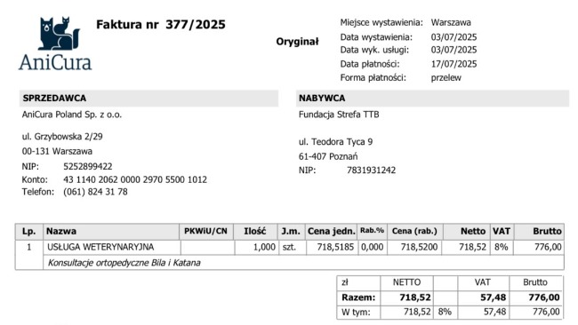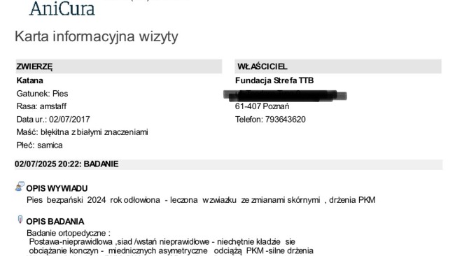Przed weekendem Katana była w klinice na kontroli ortopedycznej. Niestety nie mamy dobrych wiadomości. Katana żyje w permanentnym bólu. Bólu, który został opisany przez lekarza prowadzącego tak: „gdyby to człowiek był w jej stanie - poprosiłby o wózek”
