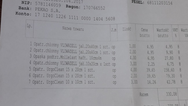 Jednakże dla wiarygodności moich słów mogę takie zdjęcia wysłać w wiadomości prywatnej. A na tą chwilę załączam zdjęcia orzeczenie o niepełnosprawności w stopniu ZNACZNYM, oraz kilka faktur jakie koszta idą na leczenie mojej nogi do tej pory. Oczywiście to nie wszystkie faktury.