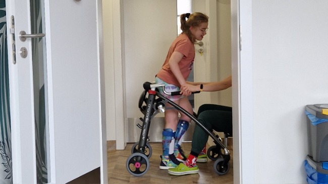 Zaczęłam odczuwać ból i ucisk. Miałam otarcia i pęcherze. Nie mogę z nich korzystać. Mama jest bardzo zła, bo tak ważne jest abym nosiła je kilka godzin dziennie aby prawidłowo obciążać stopy dzięki temu. Usłyszeliśmy o firmie , która produkuje ortezy w Niemczech. Postanowiliśmy zaryzykować i pojechaliśmy na konsultację do Wrocławia, gdzie przyjął nas bardzo miły niemiecki lekarz , który bardzo ładnie mówi po polsku. Długo mnie badał. Stwierdził, że do tej pory miałam nieodpowiednie ortezy i dlatego miałam problemy bólowe. Zaproponował wykonanie nowych z czego bardzo się ucieszyłam.