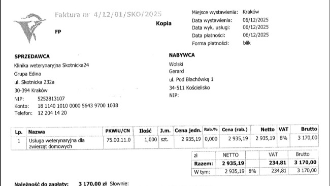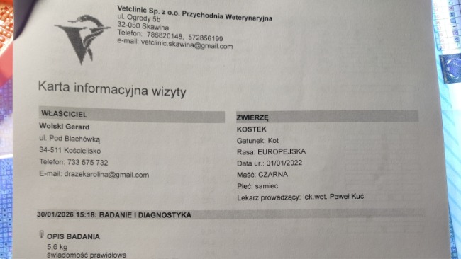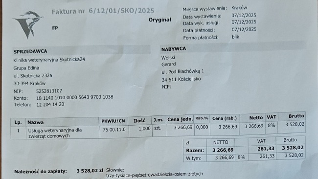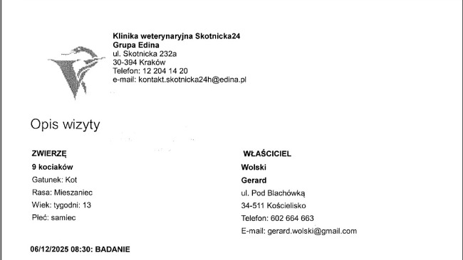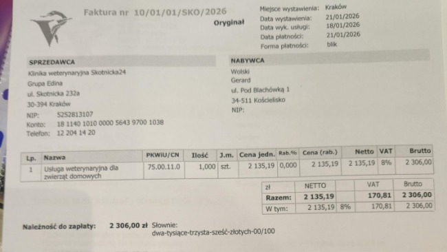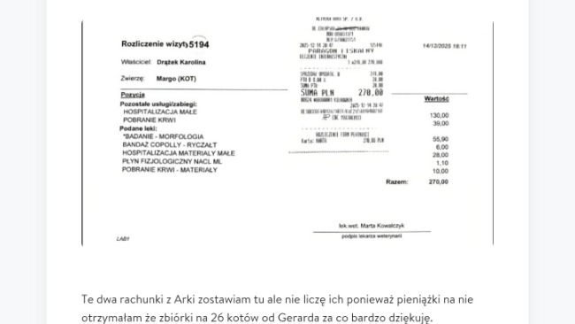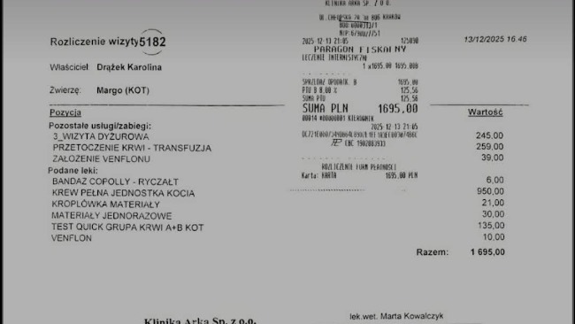 Wrzucam rachunki za pobyt kotków w Nowym Sączu 29.12.2025-09.01.2026 opisy dorzucę później