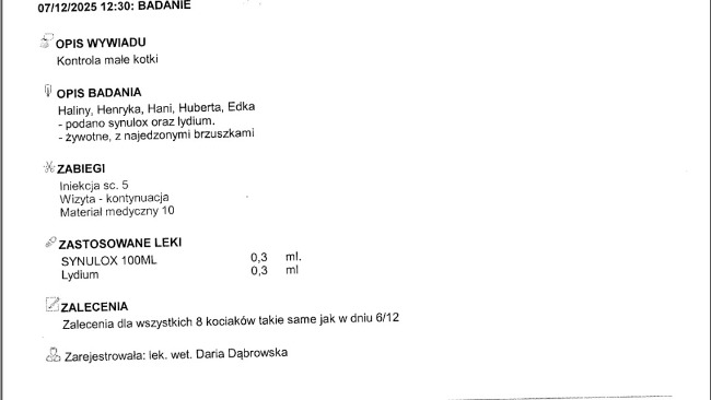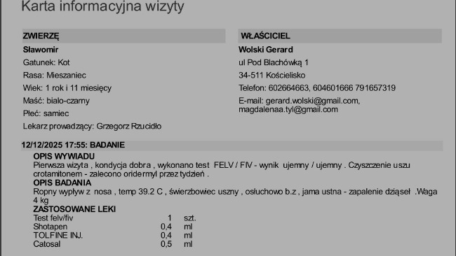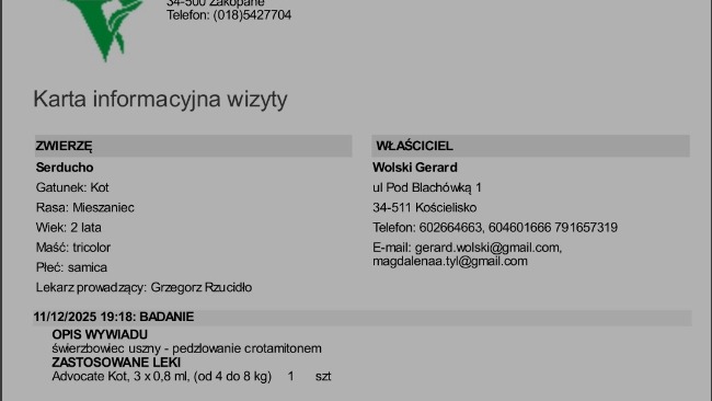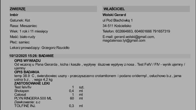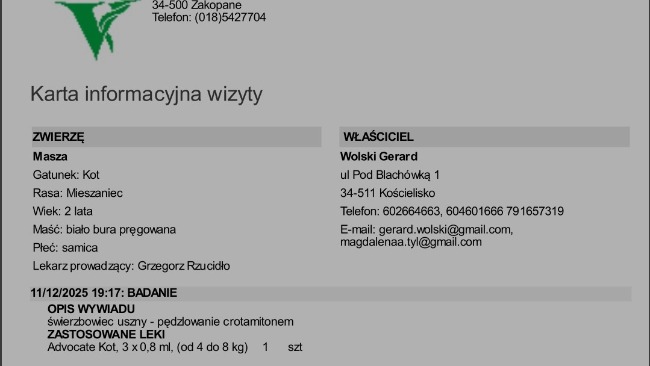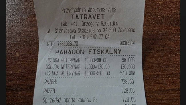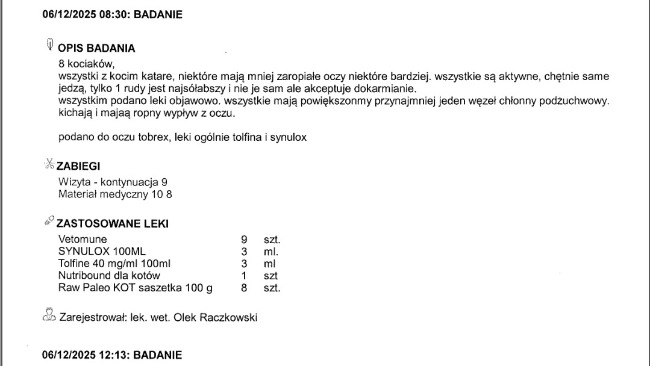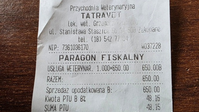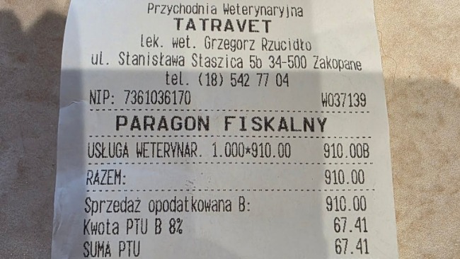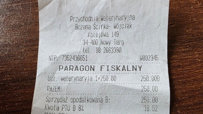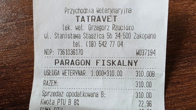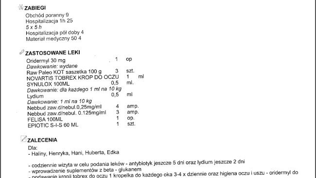 Reszta odebranych kotków jest u Gerarda jak wiecie. Wszystkie wymagają leczenia. Poniżej rachunki za wizyty w Zakopanym u weterynarza i w aptece.