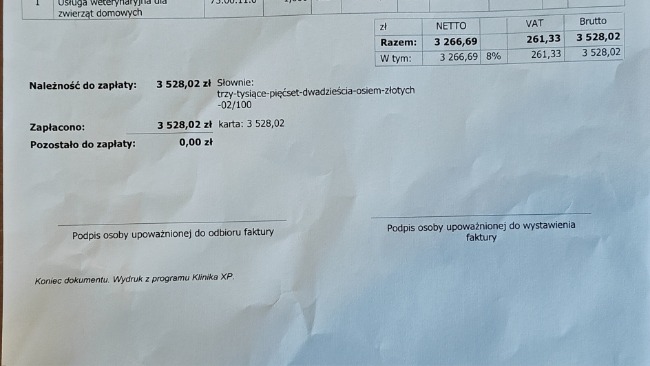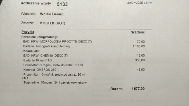 Kostek i Neruś tu jeszcze nie jesteśmy rozliczeni, ale Pani doktor powiedziała że ich koszt pobytu w Krakowie to około 2600zł.