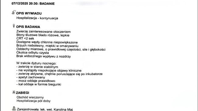 -hospitalizację oraz opiekę w klinice weterynaryjnej,