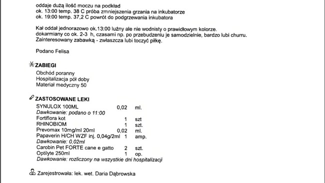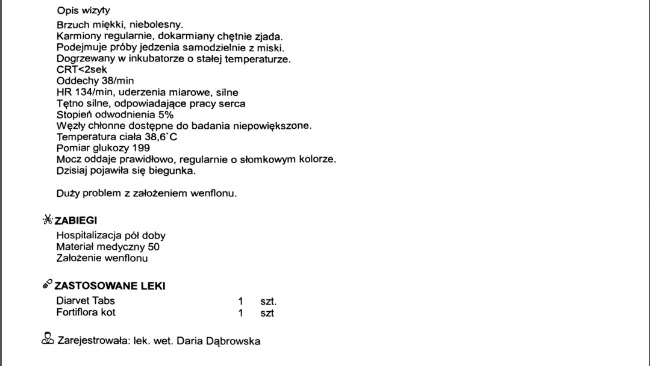 Koszt pobytu tego jednego kociaka przez dobę w klinice jest to kwota około 500 zł za dobę.