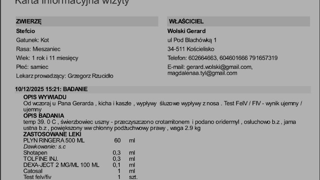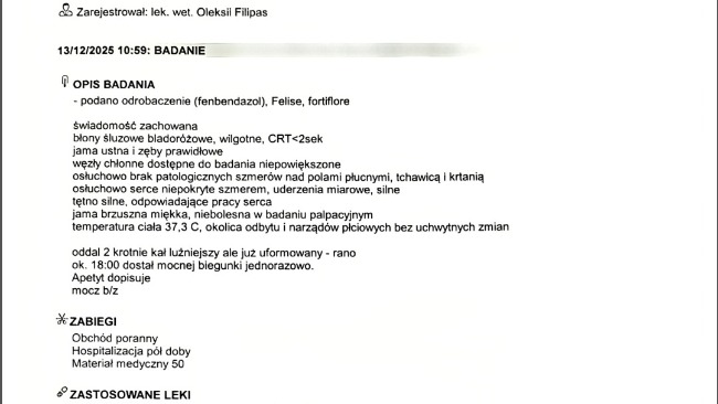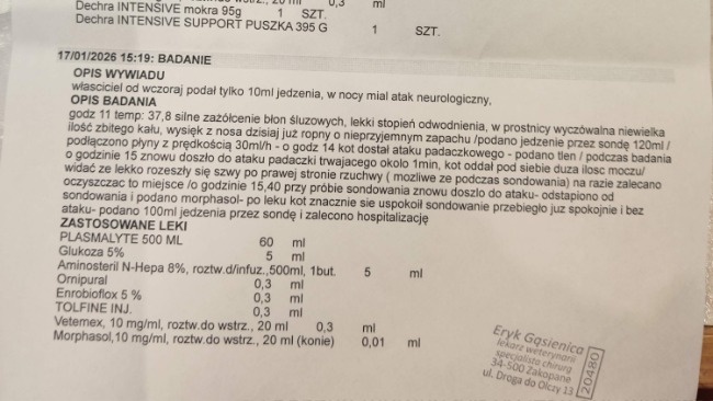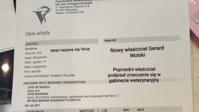 Virus kotek zostaje FIP szybka decyzja, że walczymy i ratujemy go, miał zostać uśpiony, ponieważ właścicieli nie było stać na leczenie, zrzekli się kota, a my zdecydowaliśmy z widzami, że bierzemy i walczymy o zdrowie z nim.