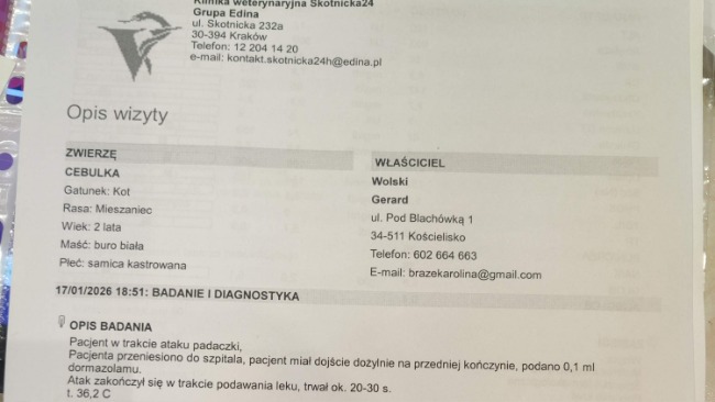 Wiecie też kochani że wczoraj Cebulka wylądowała w całodobowej klinice z powodu komplikacji po operacji wyrwania zębów , które mogą być spowodowane jej przeszłością chorobową, przeszła 4 ataki padaczki w jeden dzień.